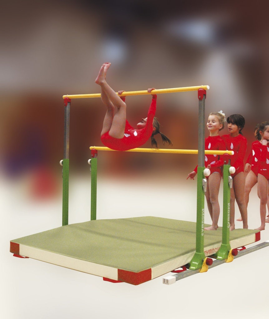 Tréningové tyče s nerovnakou výškou stožiara - skrátená dĺžka kotviacich lán