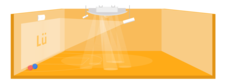 Zostava UNO pozostáva z troch modulov inštalovaných na strope: kamera, svetelná projekcia a zvuk.