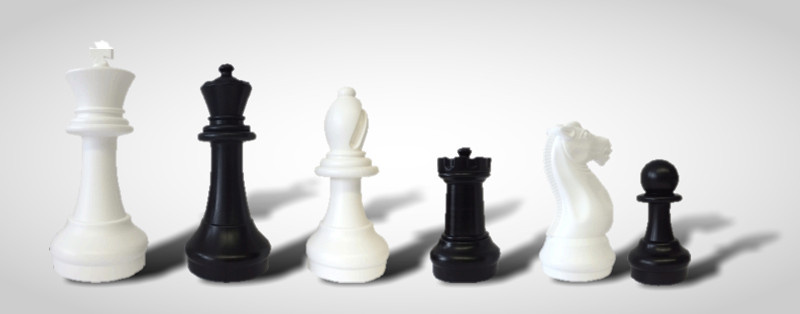 Prepracované plastové šachové figúrky pre záhradný šach menších rozmerov, výška 22-40 cm.