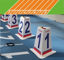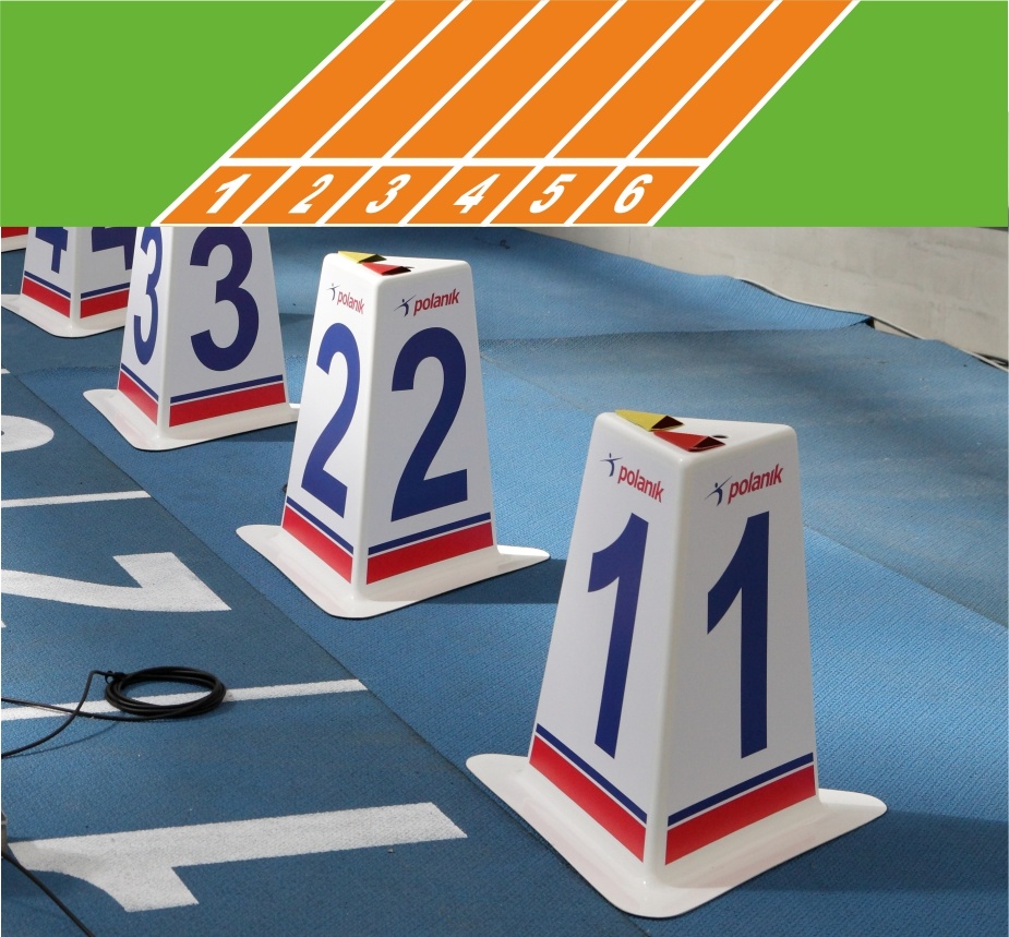 Každá značka má 2 indikátory skorého štartu. Tmavomodré čísla sú dobre viditeľné a umožňujú rýchlu identifikáciu čísla dráhy.