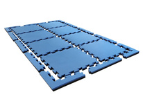 - Vrchná vrstva (modrá): vyrobená z pevnej PE peny so zvýšenou hustotou. Táto vrstva zabezpečuje odolnosť proti opotrebovaniu a bezpečný náraz, vďaka čomu je ideálna na intenzívne používanie.