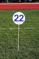 Sada 14 značiek s číslicami na jednej strane, okrúhle s jedným kolíkom, určené na streľbu, rozsah od 10 m do 22 m každé 2 m.